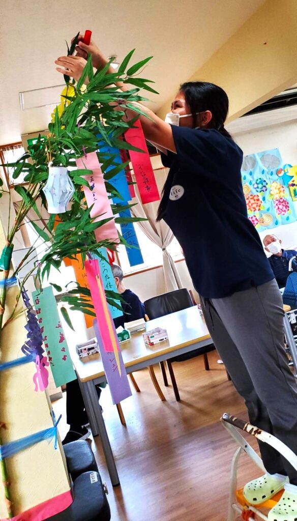 そして、7月と言えば七夕ですね。今年も皆様に短冊を書いていただきました🎋願いが叶うと良いですね♡インドネシアからの特定技能のスタッフに飾りつけをしてもらいましたが、日本独自の風習に(´・ω・`)???となっていることでしょう。