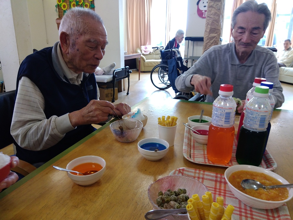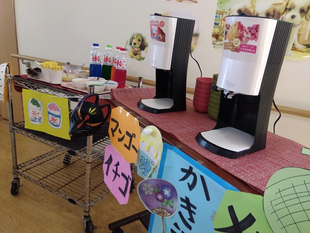 ということで、ひんやりかき氷をご提供。ただ食べるだけではなく、シロップや付け合わせの菓子などをご自身で盛り付けていただきました。