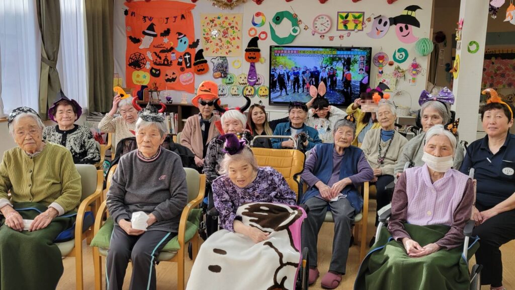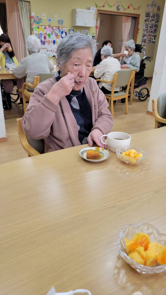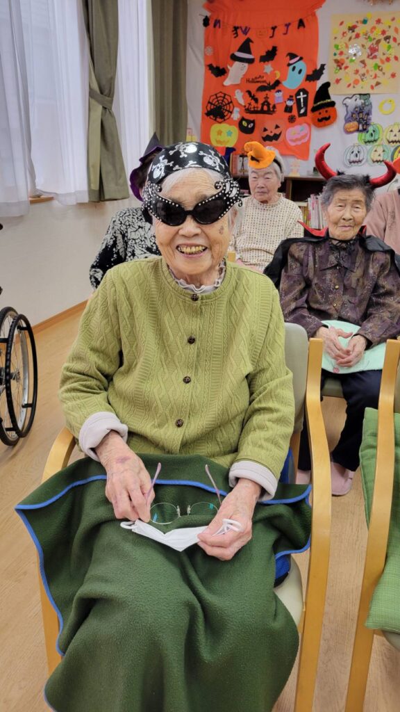 皆様で仮装を楽しみました。おやつは南瓜と柿です。
