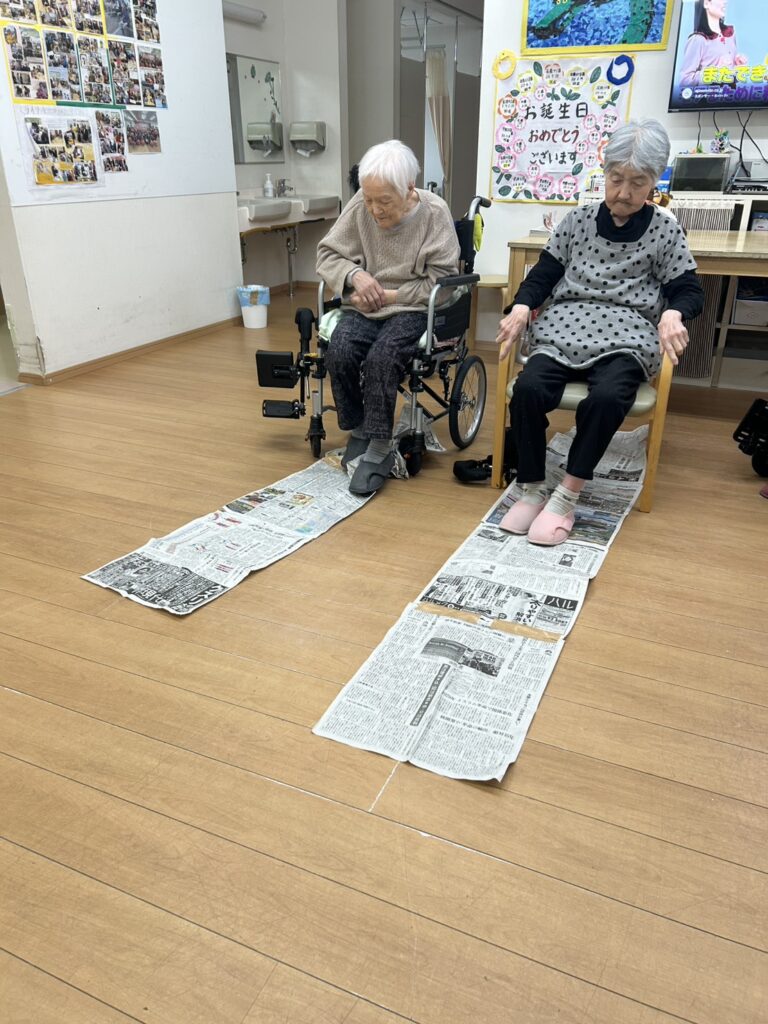 ライフ 新聞足こぎ競争! 投稿日 2025年11月7日 著者 ライフ カテゴリー お知らせ 長ーい新聞を足で巻いていくゲームです。素早い足さばきを動画でお見せしたかった(*^^*)普段の生活でこんなに素早く足を動かすことってないですよね。やってみるとなかなか疲れるし良い運動になります。 デイサービス・有料老人ホームライフ 新庄市金沢