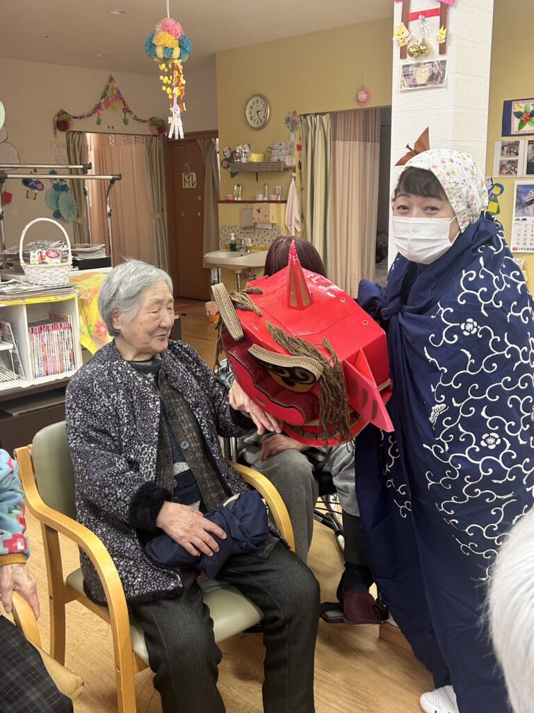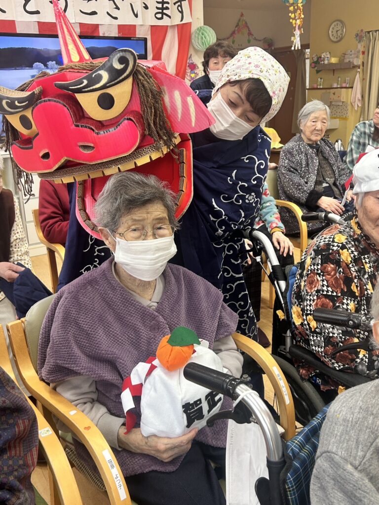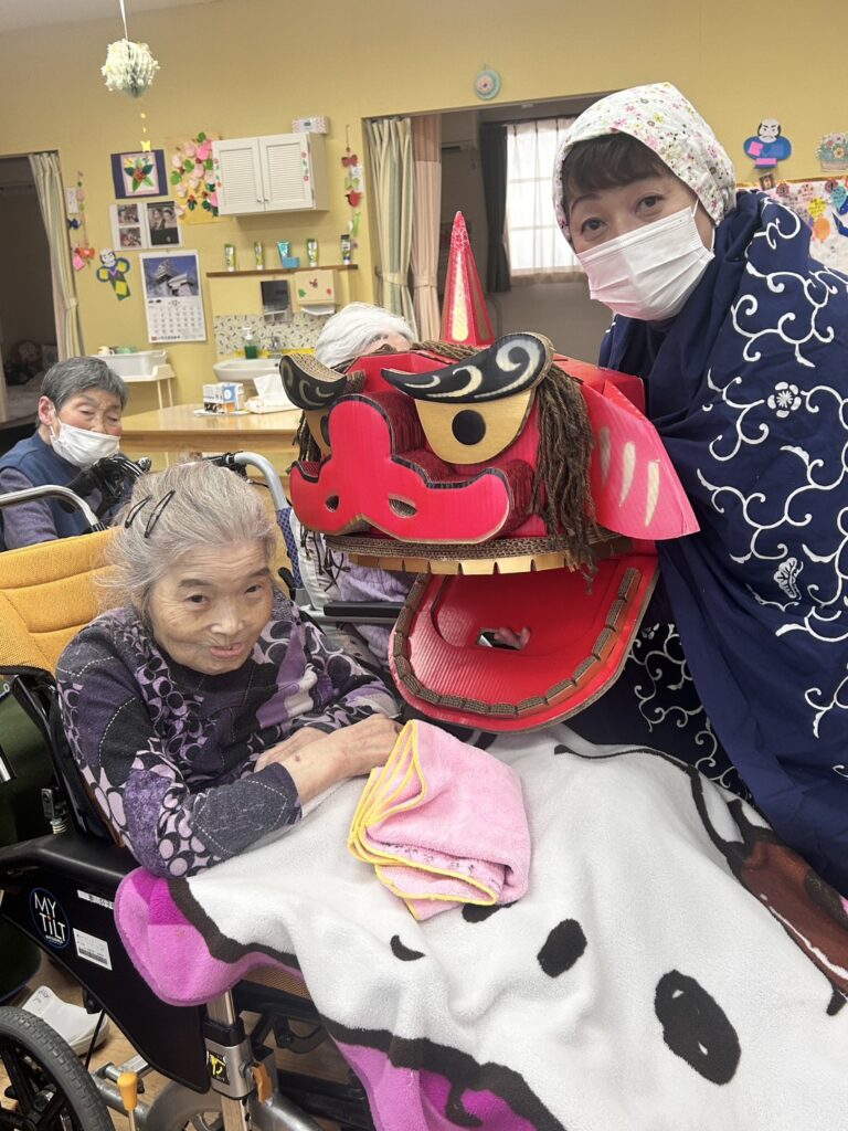 さて、恒例の獅子頭の厄除けも開催です。あかぎれにお悩みの利用者様。獅子頭に手を噛んでもらったら午後には治った!とのご報告が(*^_^*)なんと凄いご利益です。