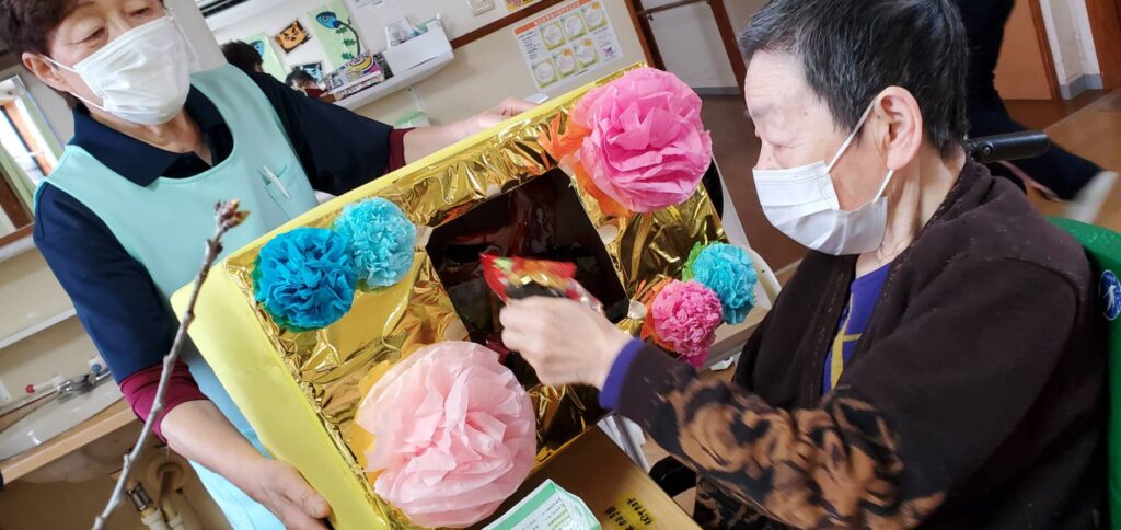 さて、こちらはサイコロを振るわけではなく、おやつのくじ引きです(*^^*)準備も利用者様にしていただきました。